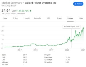 Ballard Power Systems makes hydrogen fuel cells for automobiles. But speculative alt energy stocks are growing.