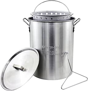 5 quart capacity aluminum pot with side handles Perforated strainer basket with insulated handle and drain hook Stock Pot. Ideal for use with Outdoor Fryers. The CHARD 30 QT.